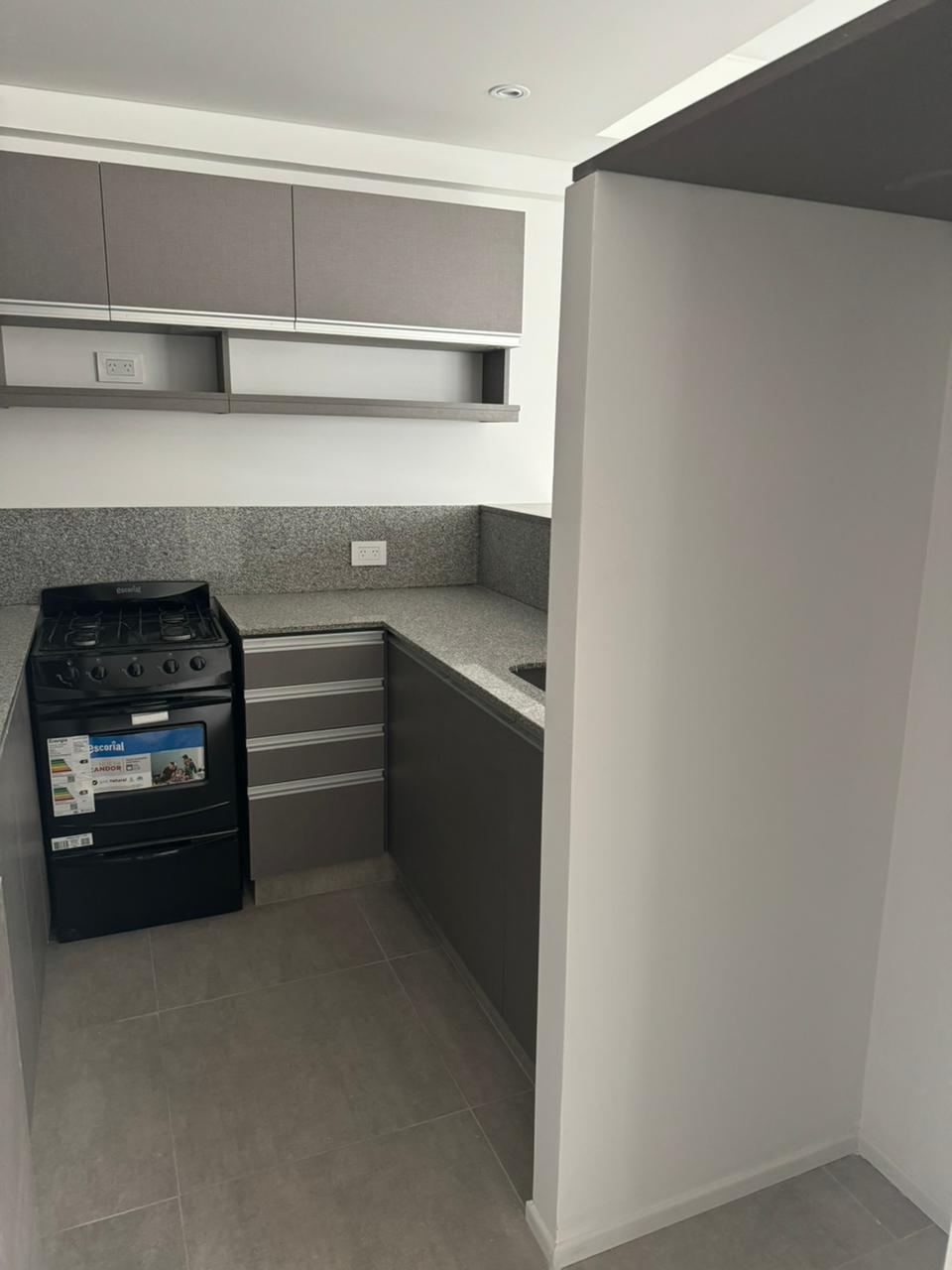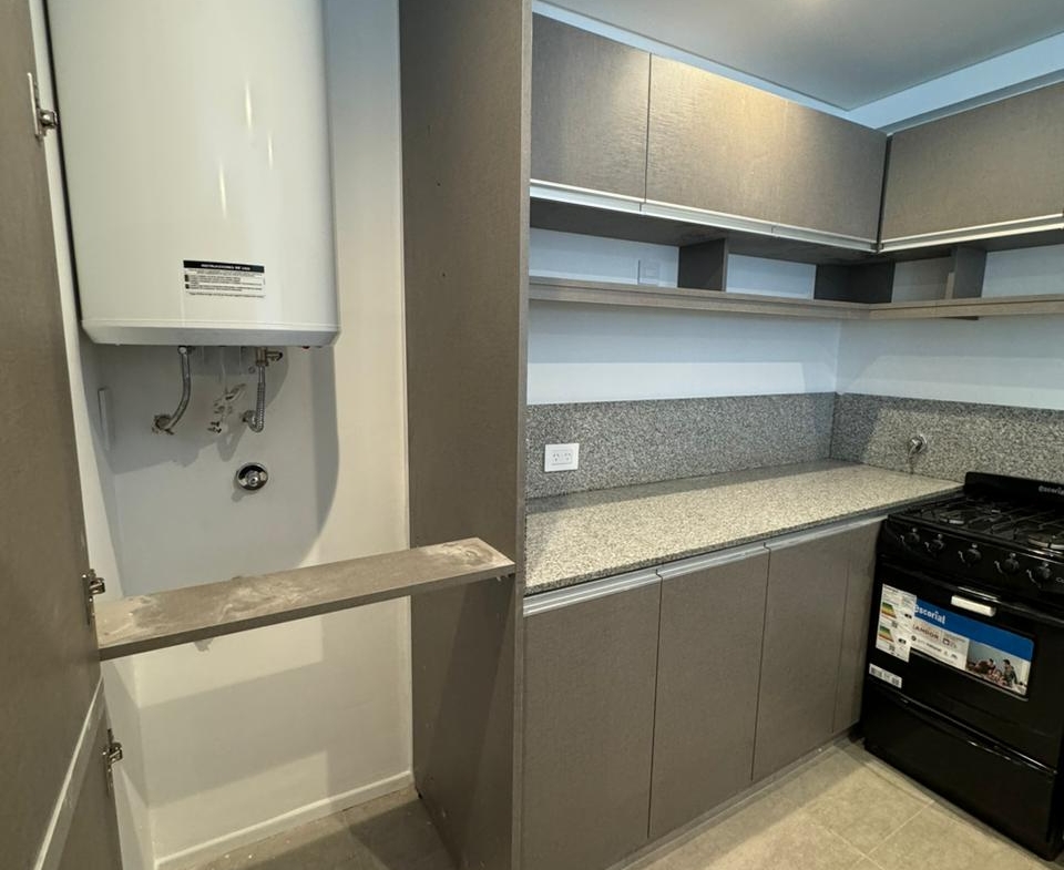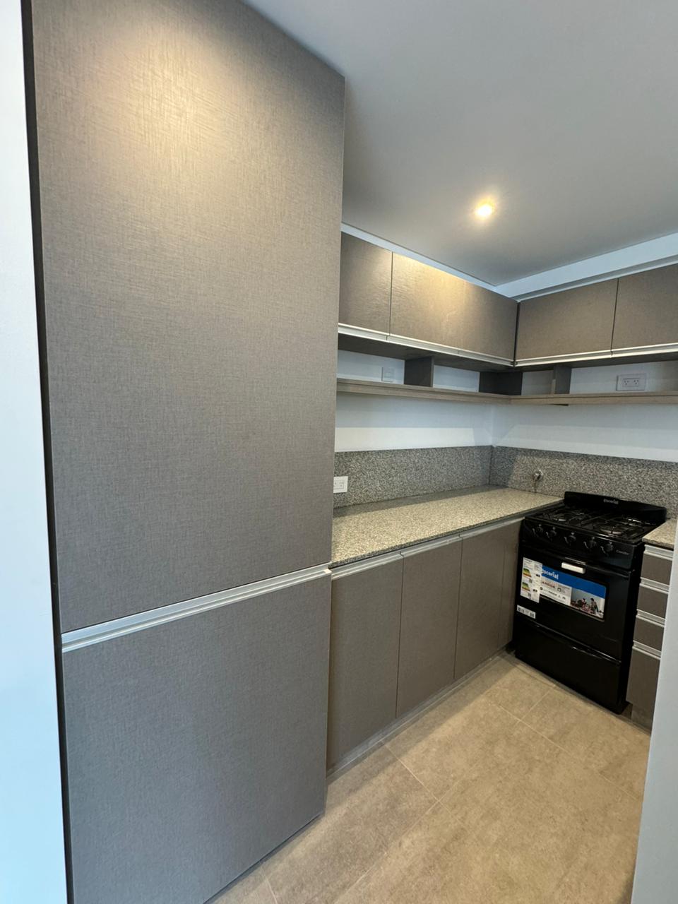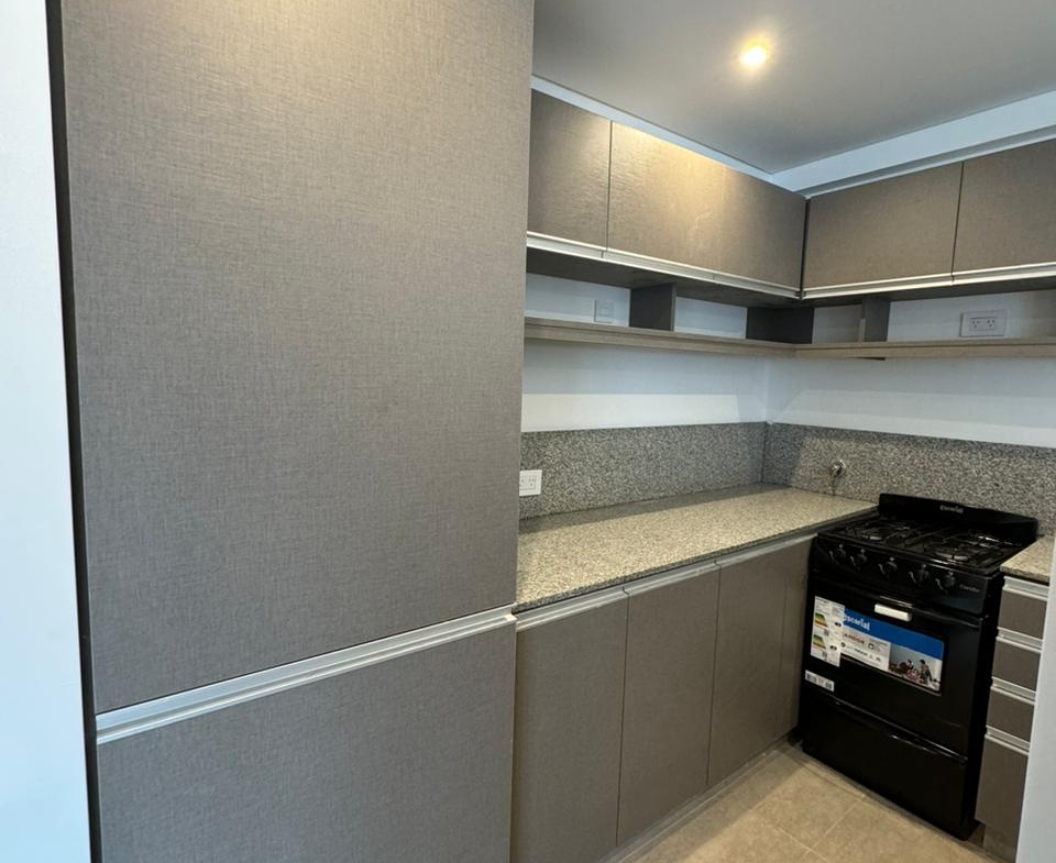 – La cocina, equipada con muebles de diseño en melamina, incluye una cocina a gas de 4 hornallas y horno de reconocida marca.