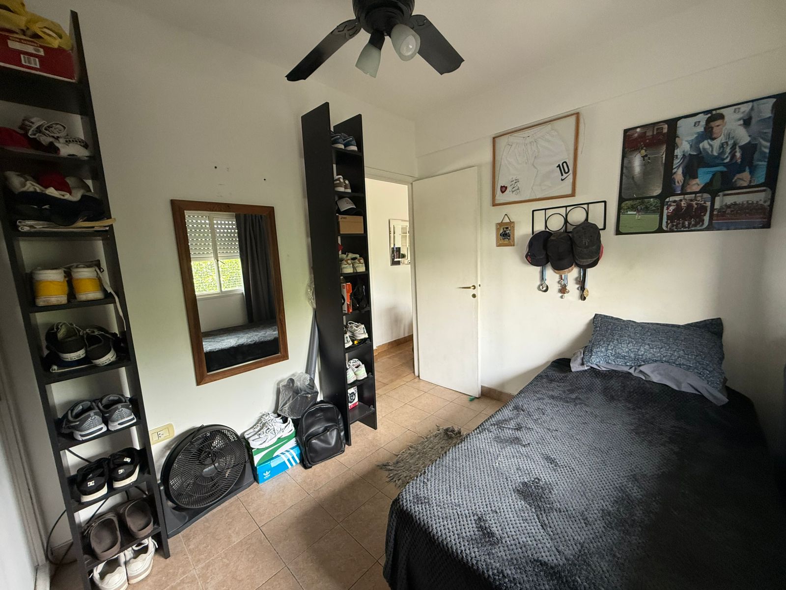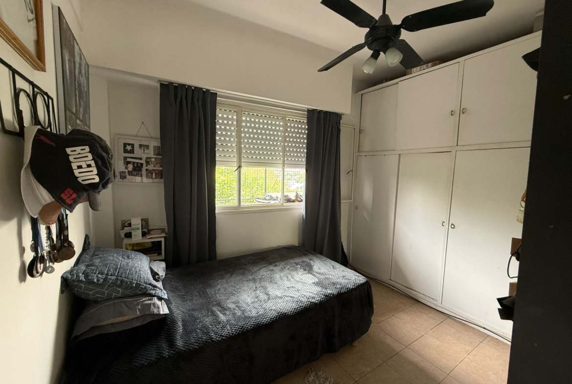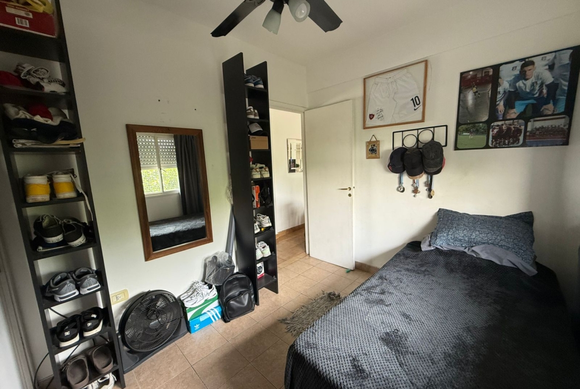 El departamento posee dos dormitorios, ambos con placares, ventilador de techo y ventanas al exterior, lo que garantiza luminosidad y aireación constante.
