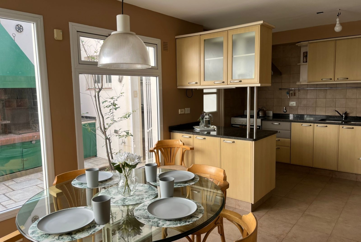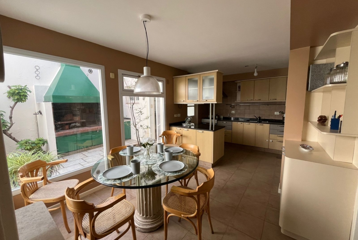 La cocina, funcional y cómoda, combina un diseño clásico con materiales de calidad. Cuenta con gran espacio de guardado, mesadas de granito, horno y cocina a gas, y un comedor diario con vista al patio, ideal para disfrutar del día y compartir momentos en familia. Desde la cocina se accede directamente a la cochera, que cuenta con una despensa adicional, perfecta para almacenamiento y mantener todo en orden.