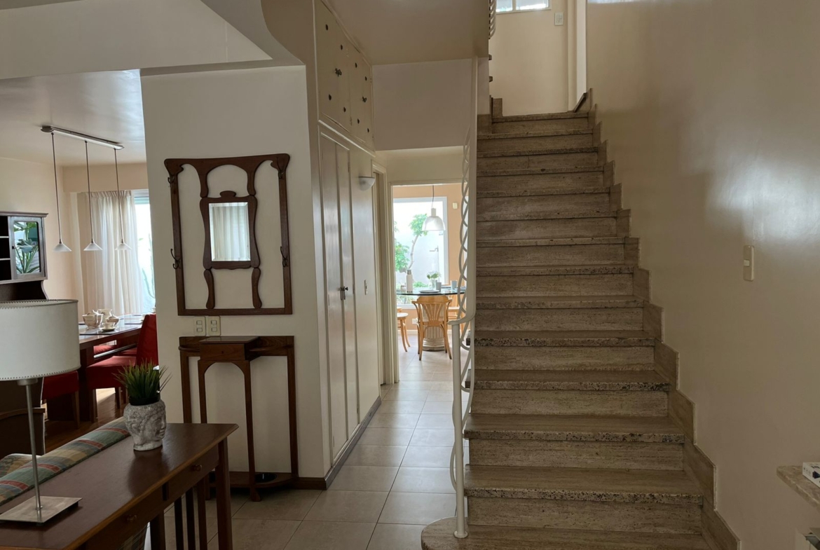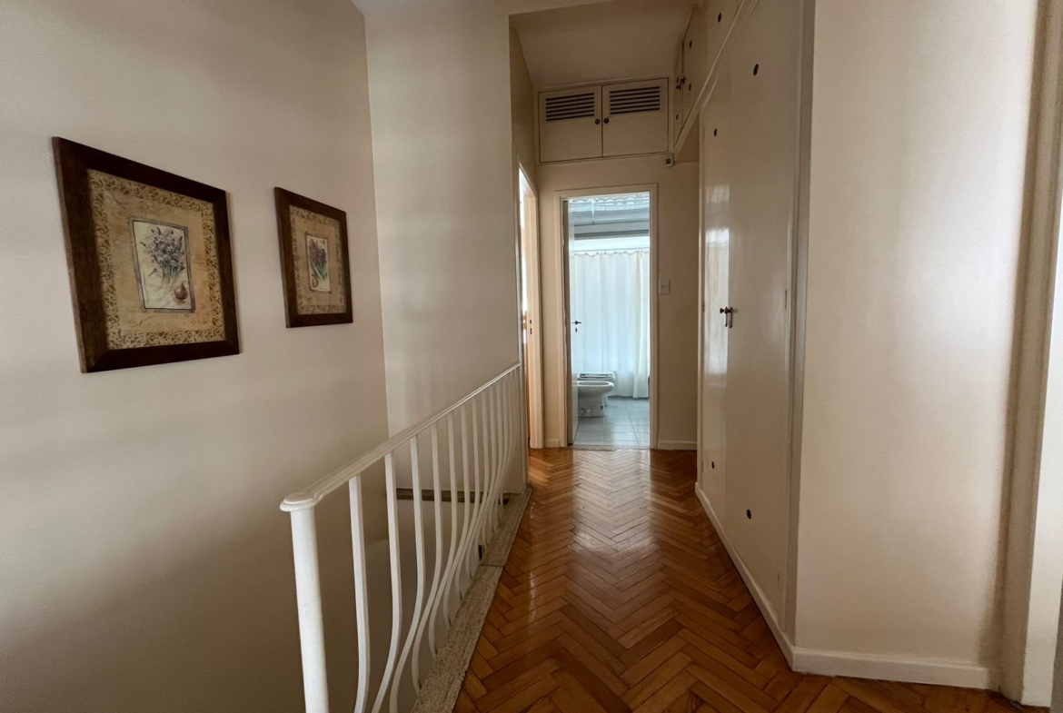 En la planta alta, los tres dormitorios aprovechan cada espacio, al igual que los pasillos distribuidores, amplios y luminosos. Dos de las habitaciones cuentan con placard, escritorio y ventanas que aportan mucha luz natural, mientras que la suite principal ofrece baño con hidromasaje y salida a un balcón al frente, creando un ambiente íntimo y tranquilo.