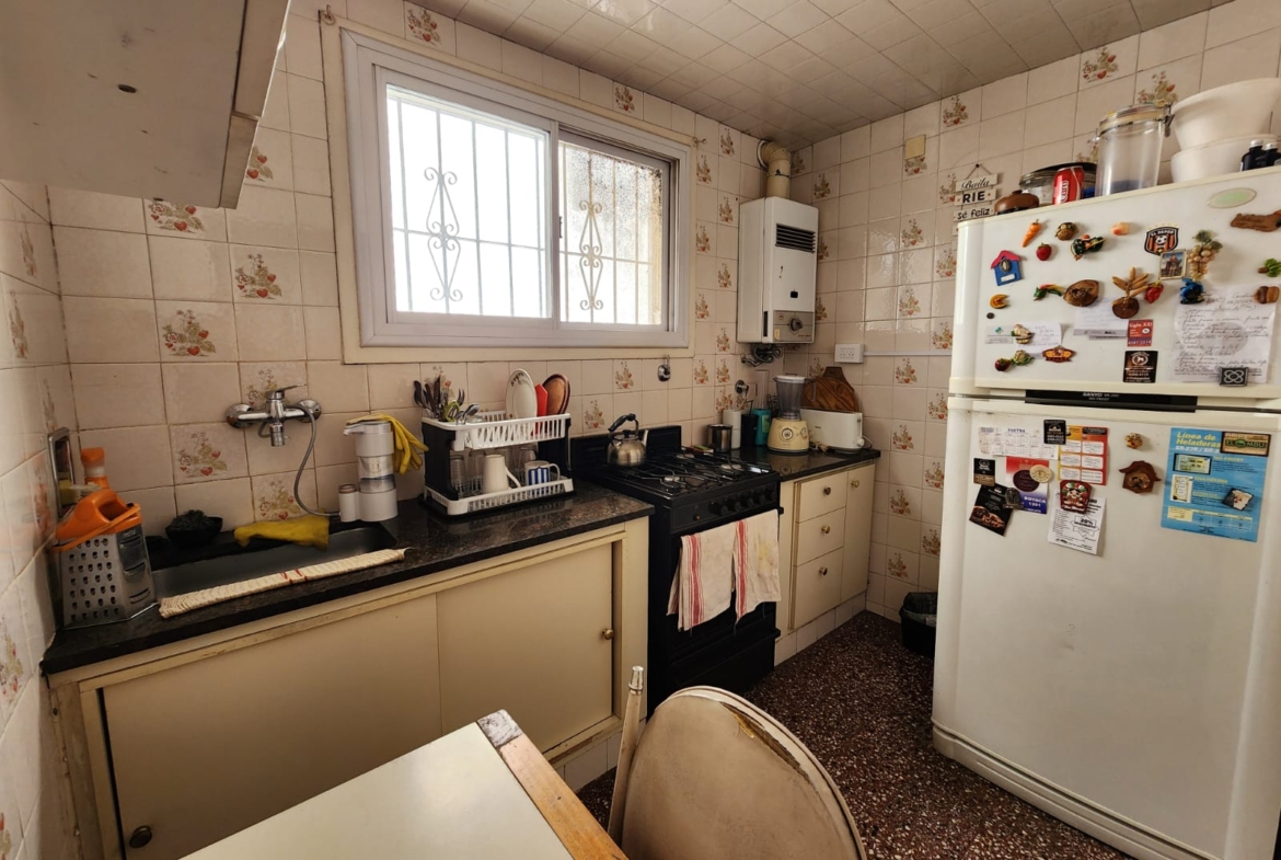 Casa ubicada al frente del lote, con ingreso tanto por la puerta principal como por la cochera cubierta (capacidad para un auto). Al entrar, la propiedad dispone de un baño completo y una cocina con sus muebles correspondientes, además de dos dormitorios bien dimensionados.