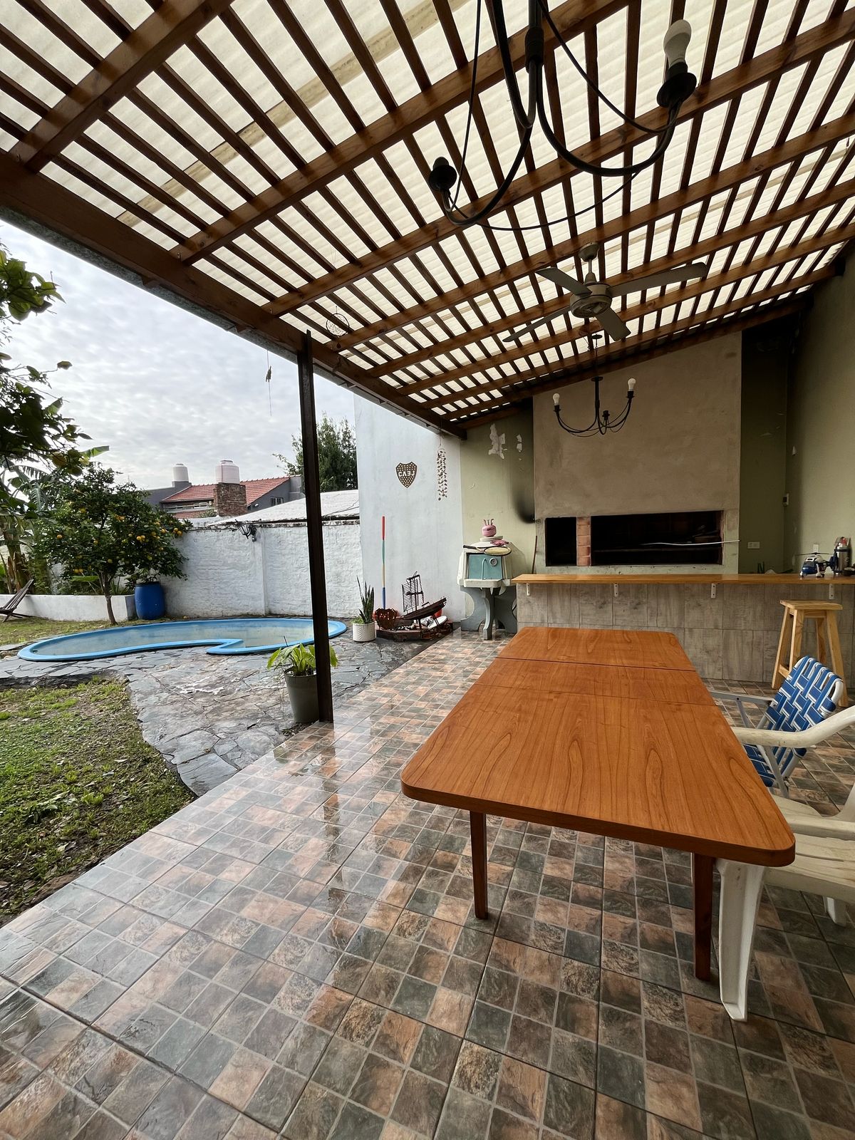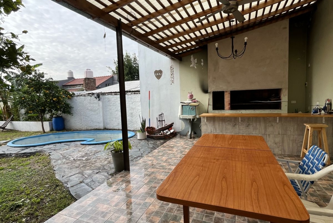 Amplio living-comedor, cocina-comedor diario, toilette de recepción. Patio. Fondo libre con pileta y quincho descubierto con parrilla.