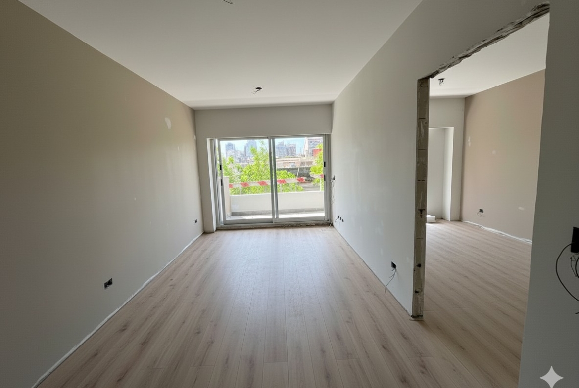 Departamento dos ambientes en construcción en Boedo, al contrafrente con balcón y vista abierta.