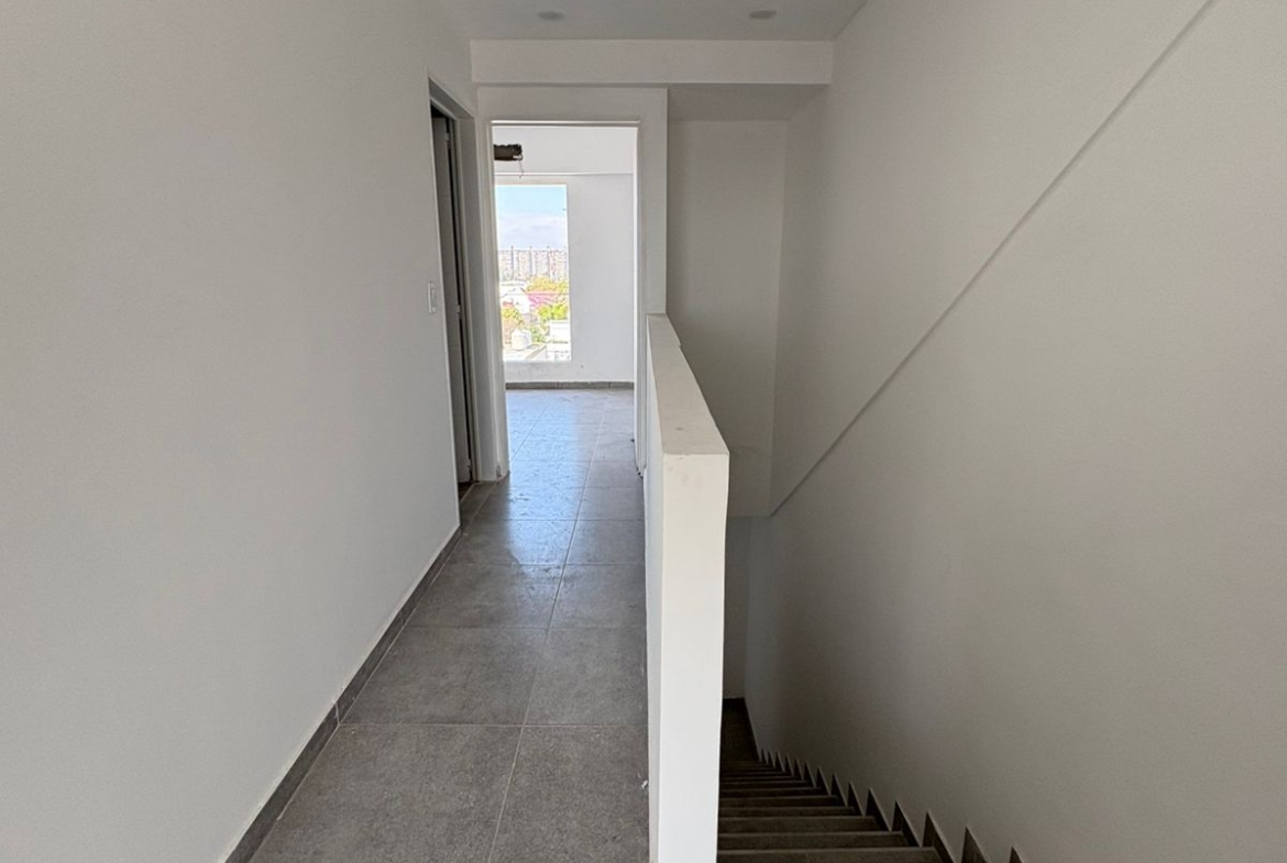 Departamento 3 ambientes en dúplex en edificio de categoría. ÚNICO. En la planta baja, living (3,60×2.19), cocina integrada (2.96×2.15), toilette (1.28×1.90), balcón (2.80×2.42); en la planta alta, dormitorio principal (3.37×2.92) con balcón al frente (3.50×1.20), segundo dormitorio (3.55×2.96), baño completo con bañera (4.17×1.25).