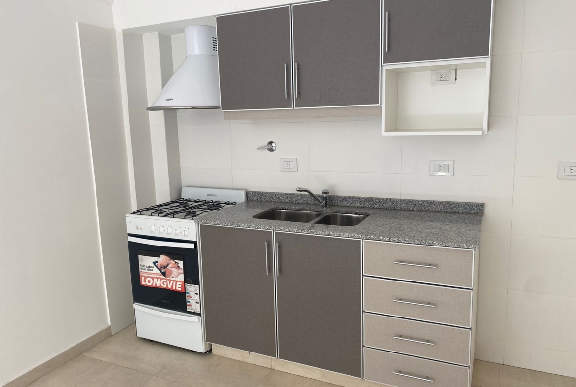 Cocina con muebles completos (bajo mesada y alacena) y artefacto de cocina de primera marca