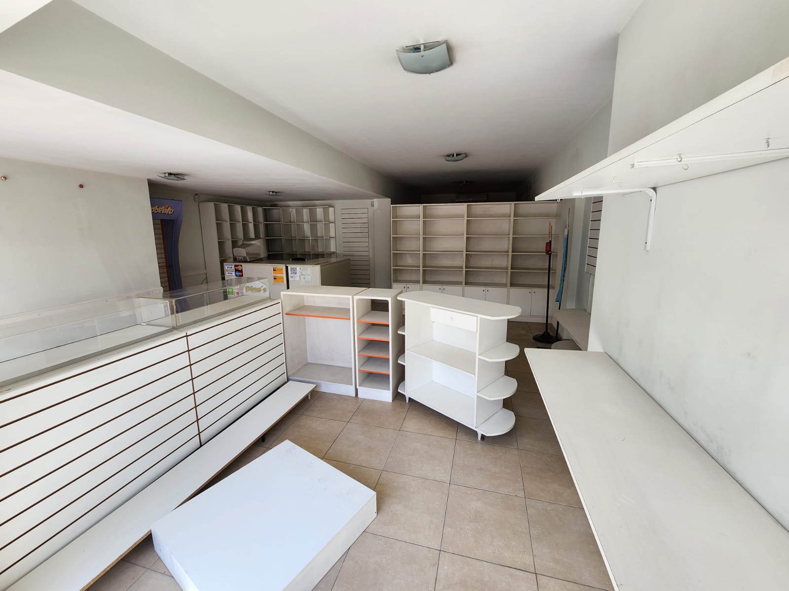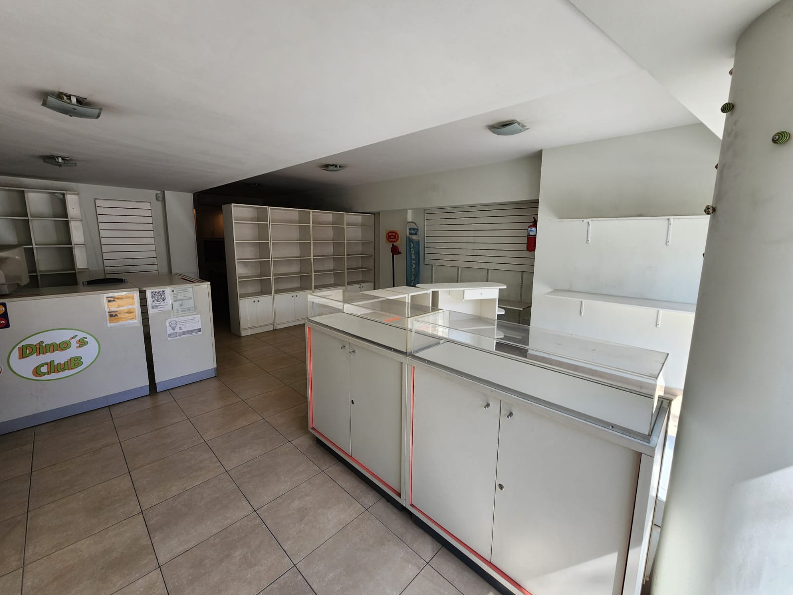 Iluminación: Artefactos de techo tipo plafón y spots dirigidos en áreas de mostrador.