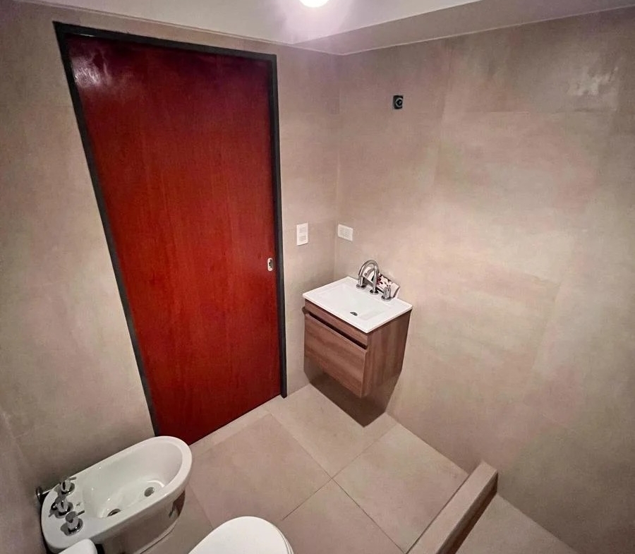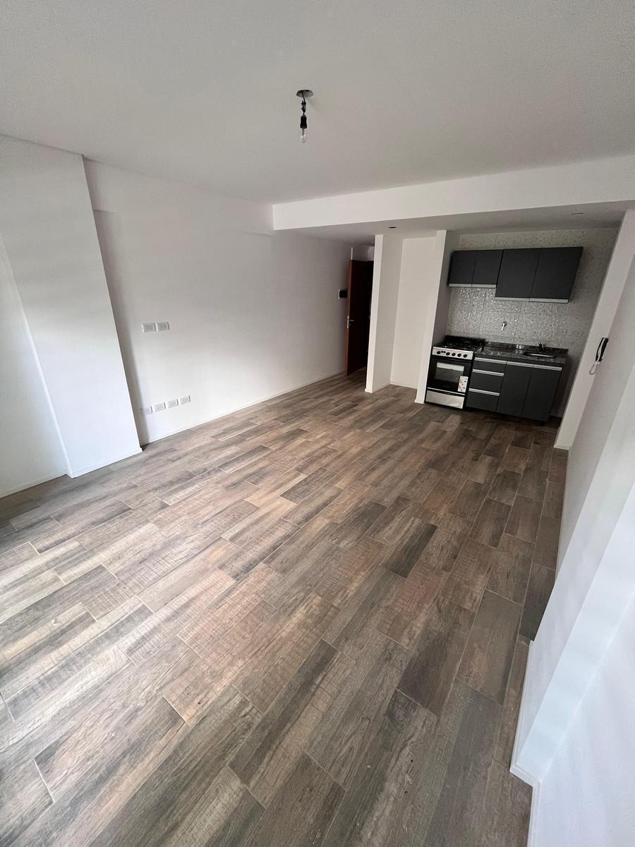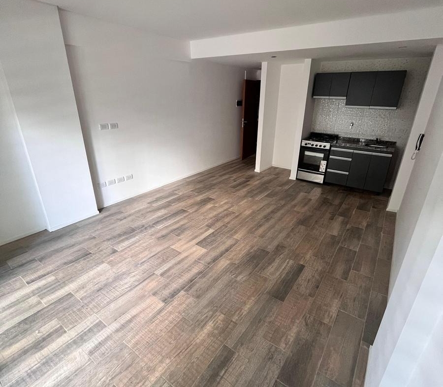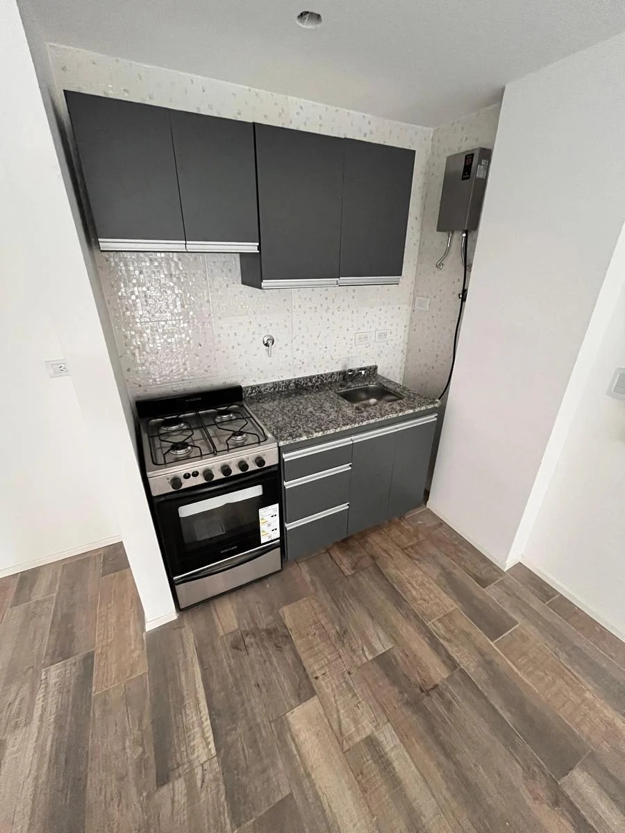 Cuenta con pisos de porcelanato en toda la unidad, aportando una estética actual y de fácil mantenimiento. La cocina integrada está equipada con cocina a gas y mobiliario moderno, brindando practicidad y comodidad en el uso diario.