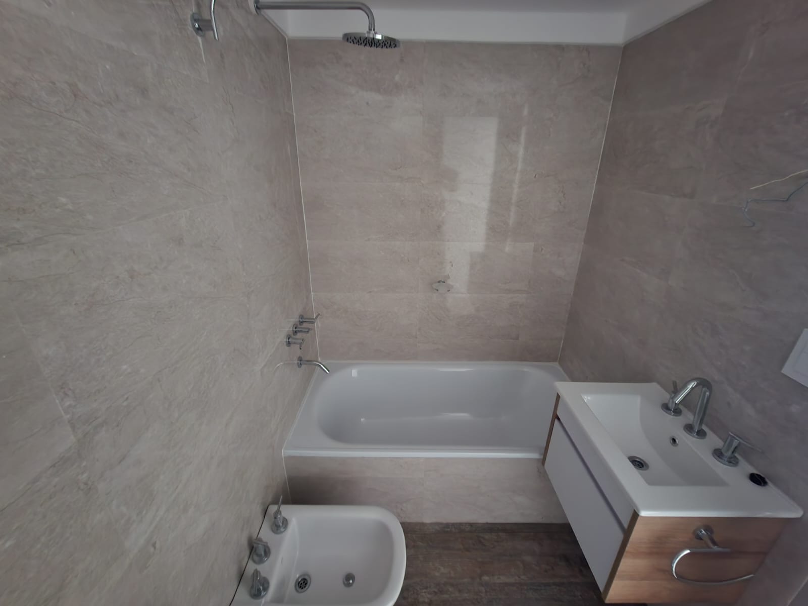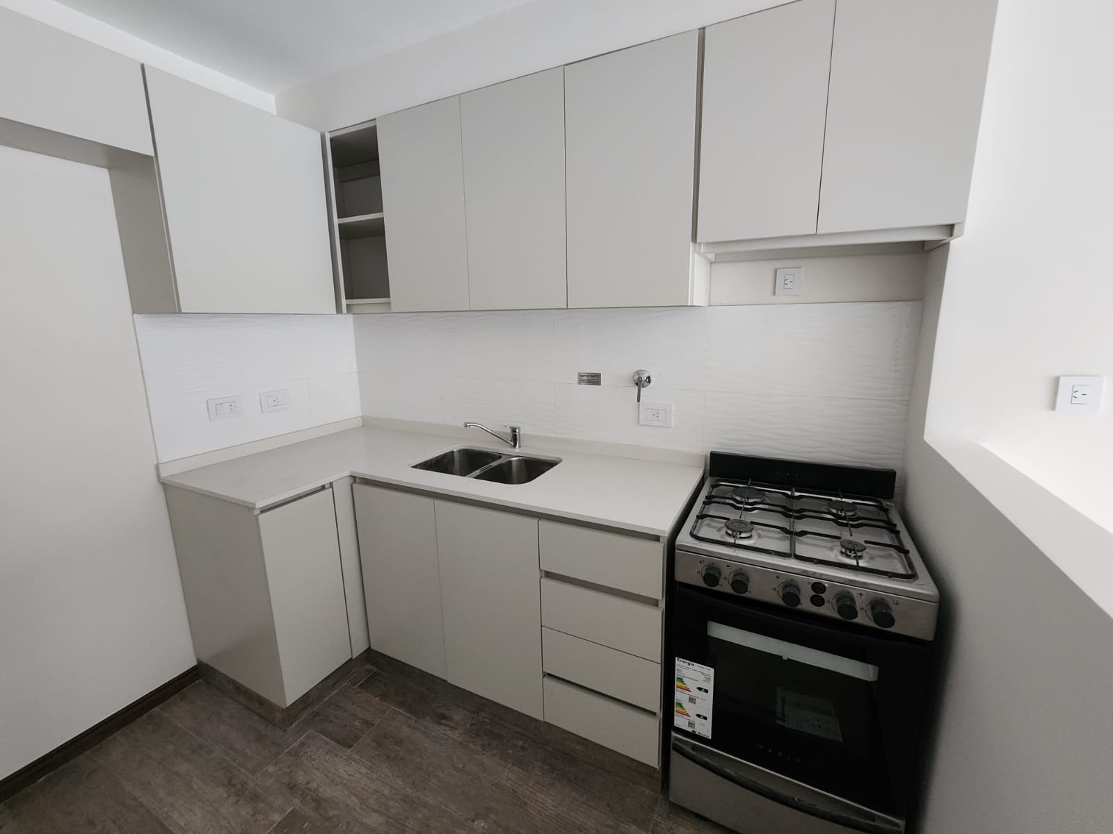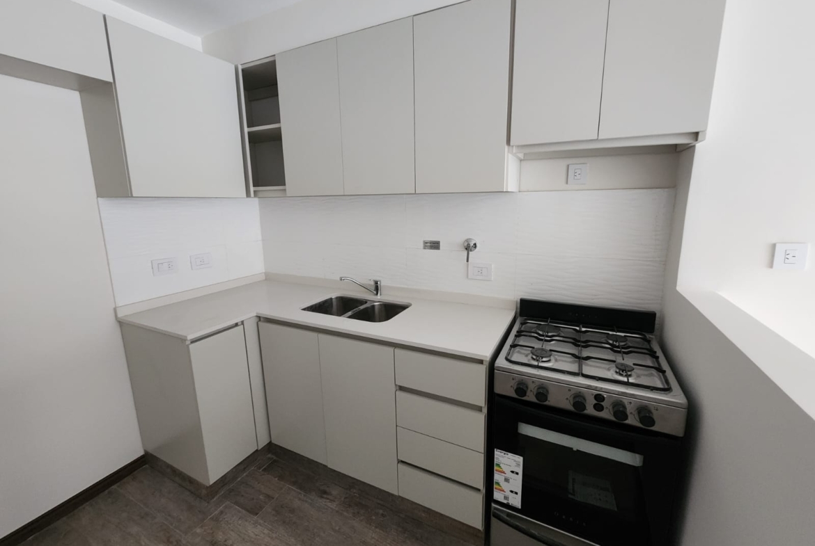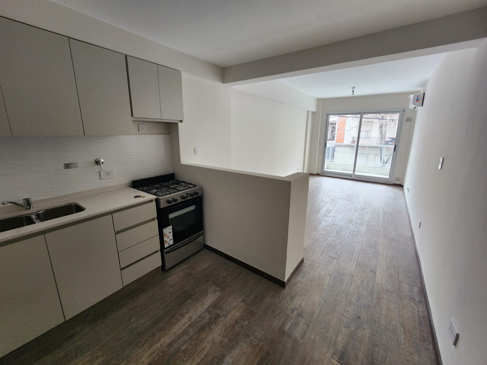 Monoambiente ubicado en un primer piso con balcon al frente, luminoso y super funcional. El ambiente es amplio y esta bien integrado, incluye cocina a gas con sus respectivos espacios de guardado tanto alacena como bajo mesada y una barra divisoria de ambiente. Cuenta con un sector preparado para colocar un lavarropas. Cuenta con un balcón que le aporta luminosidad al ambiente y cuenta con un baño completo con bañera y estilo moderno.